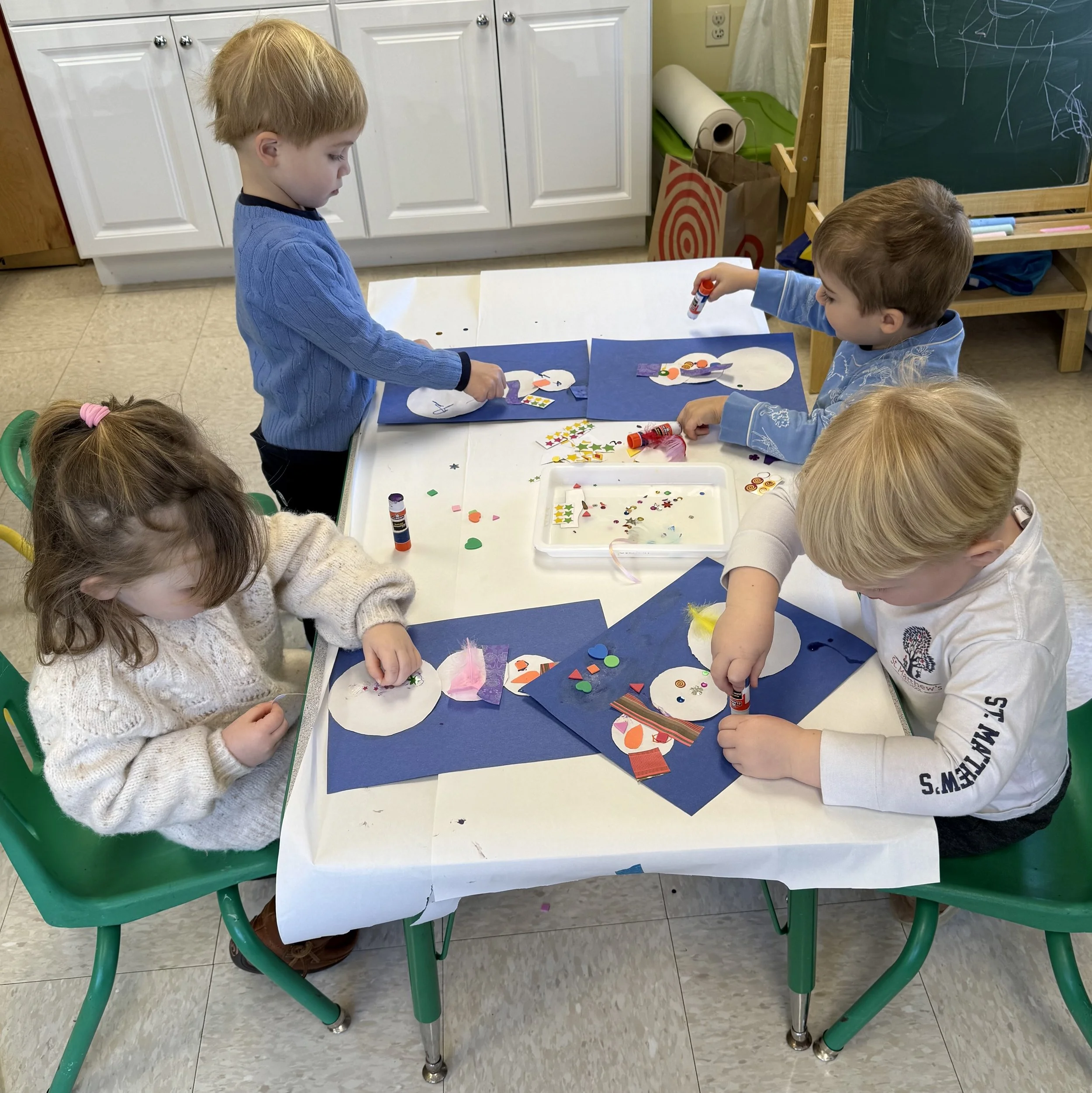 Thursday mornings at St. Matthew’s Preschool, you’ll find our two, three and Pre-K students making their way to our beautiful Children's Chapel. Lead by a member of our clergy, they enjoy 15-20 minutes of story, song and sharing that puts their lives within the greater context of Jesus' love for them and for all creation. The gathering is welcoming of all faith traditions and holds as its simple premise the belief that Jesus loves us, every one.